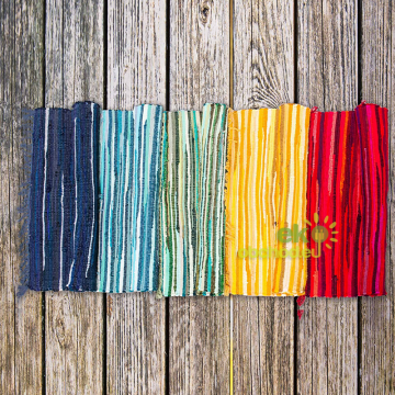 Luxusný Ručne Tkaný Koberec 50x90 cm. Tieto Luxusné Indické Koberce sú vyrobené ručne z recyklovaných materiálov z indického textilného priemyslu, takže sú veľmi ekologické.