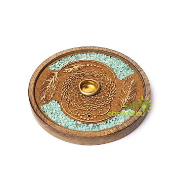 ID produktu: 4554Stojan na vonné tyčinky, bohato zdobený Liečivými rukami a kameňmi Ametystu.