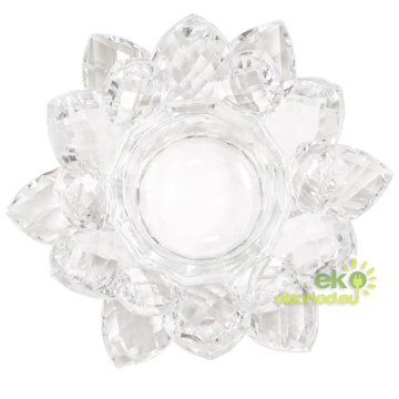 Elegantný svietnik v tvare lotosu vyrobený z krištáľového skla.