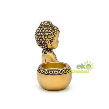 Svietnik na čajové sviečky meditujúci Budha, zlatá