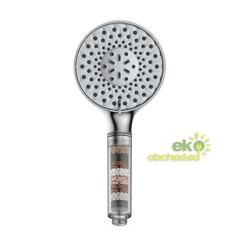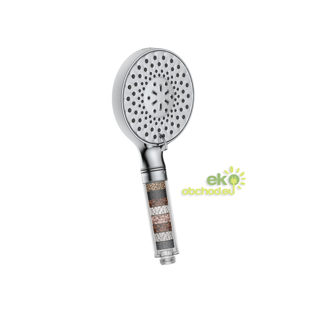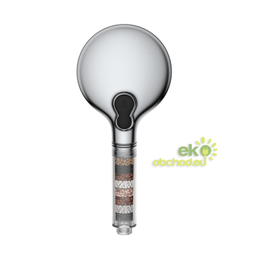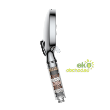 - Obohatená o 7 stupňový vymeniteľný filtračný systém, ktorý je umiestnený v rukujeti sprchy