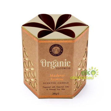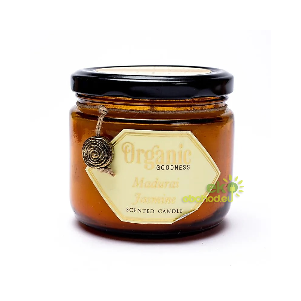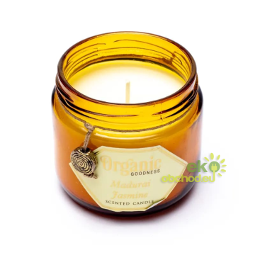 ID produktu: 3569Sviečka Organic Goodness s vôňou jazmínového esenciálneho oleja z mesta Madurai v Indii. Tento jazmín je výnimočný, pretože je kráľovnou vôní v Indii a spája sa s láskou a romantikou.